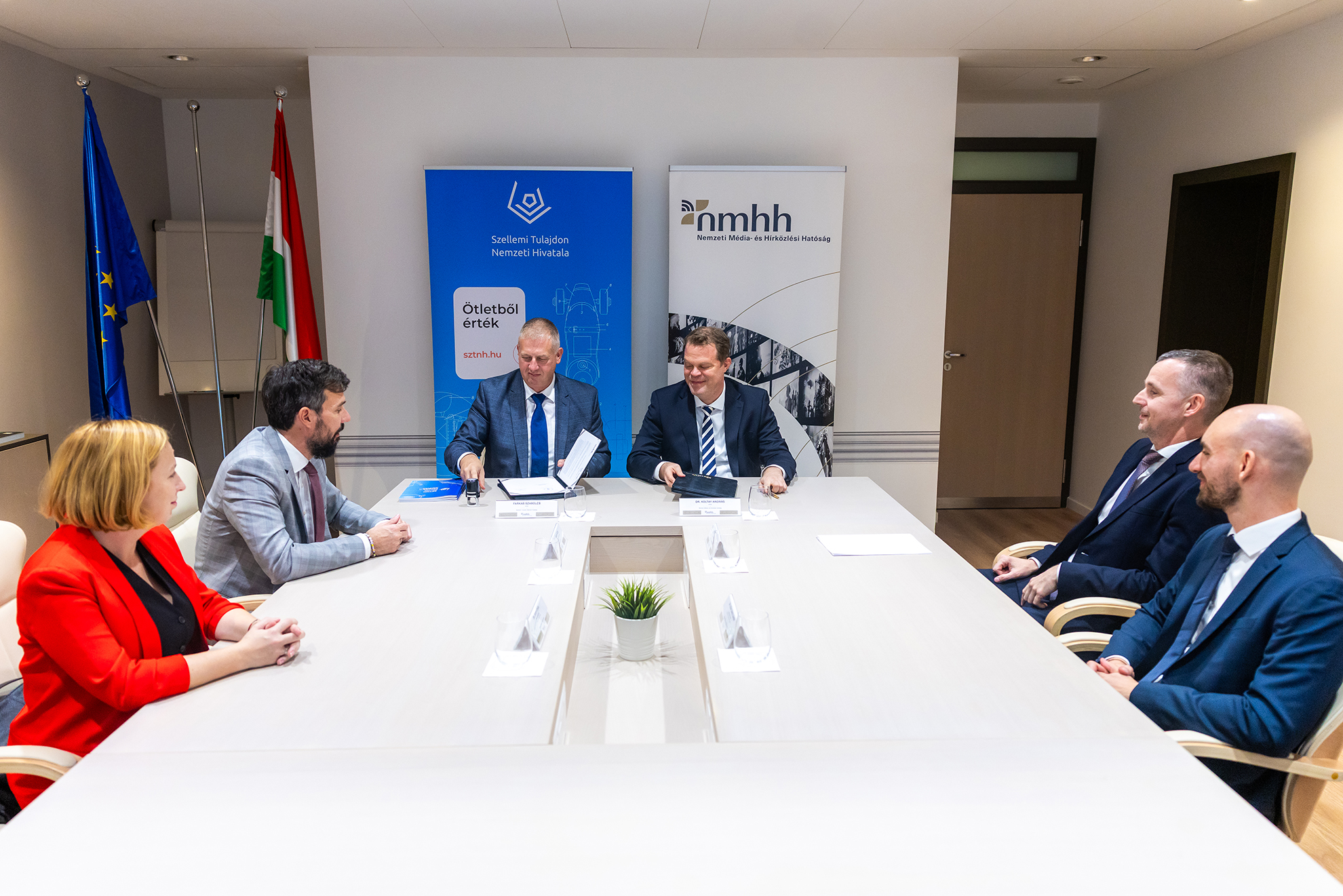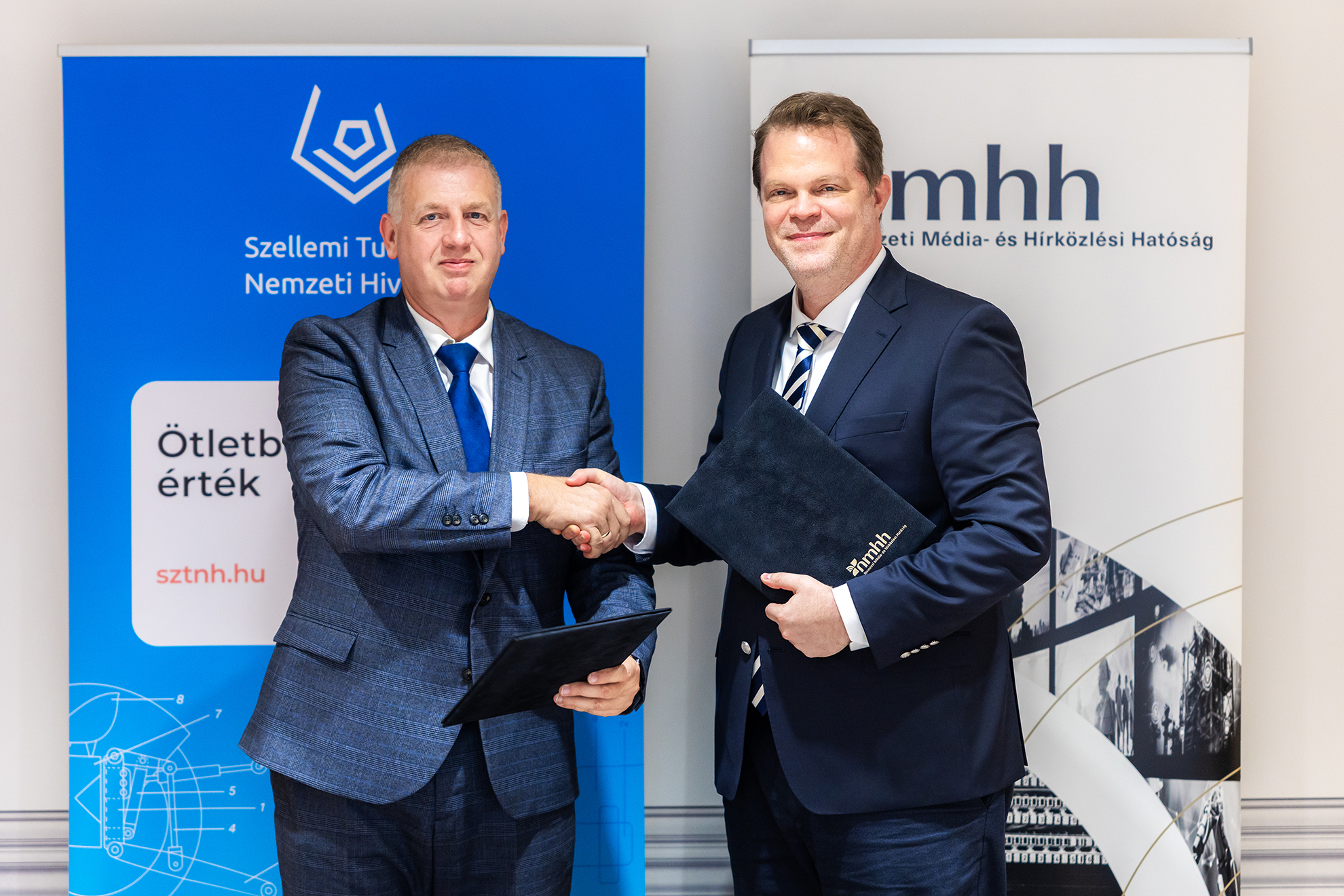 Együttműködési megállapodást kötött a Nemzeti Média- és Hírközlési Hatóság (NMHH) és a Szellemi Tulajdon Nemzeti Hivatala (SZTNH). A dokumentumot Koltay András, az NMHH elnöke, és Farkas Szabolcs, az SZTNH elnöke látta el kézjegyével 2025. november 11-én. Kiemelt cél a biztonságos online környezet erősítése.