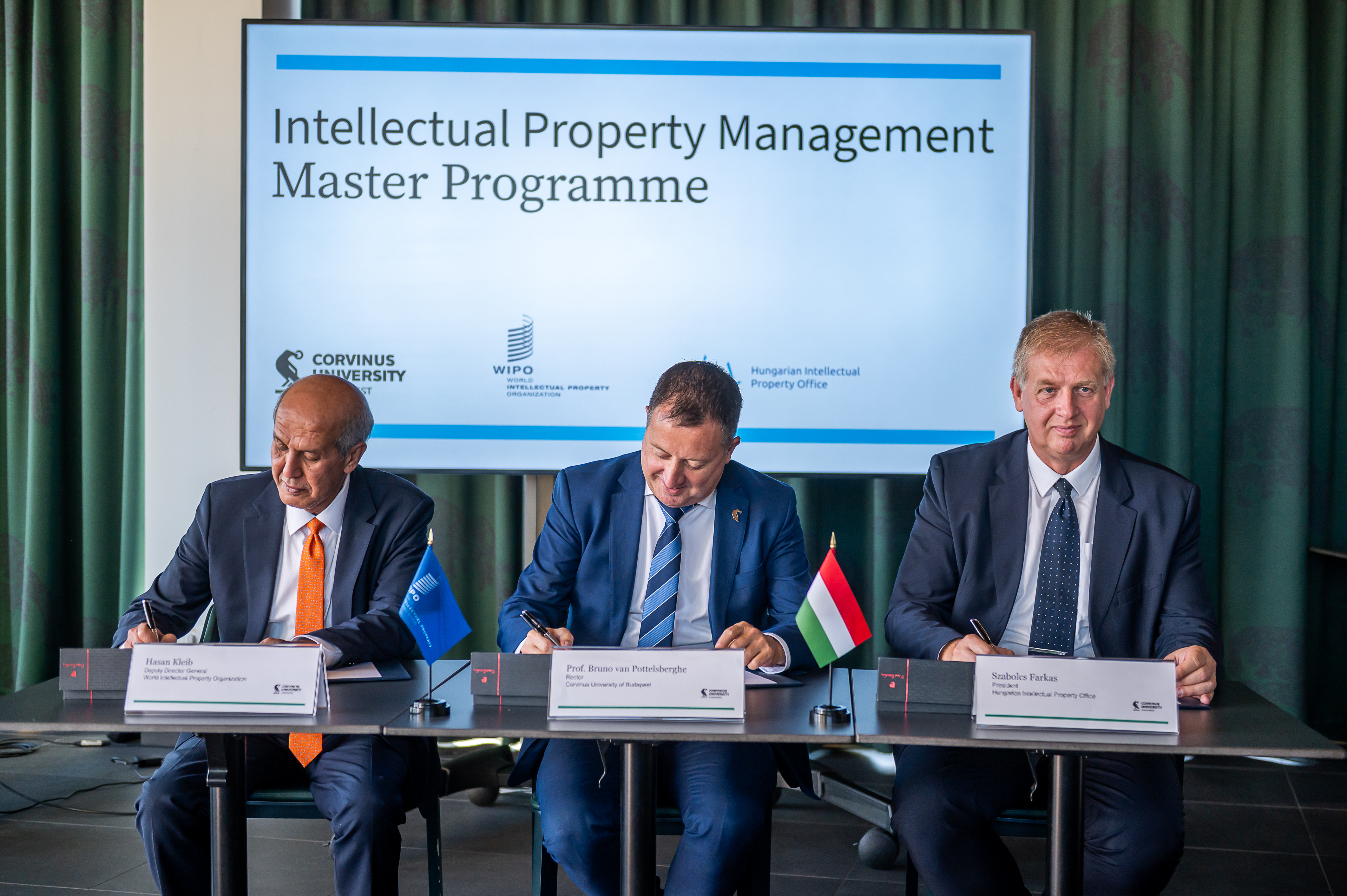 A Budapesti Corvinus Egyetem, a Szellemi Tulajdon Nemzeti Hivatala (SZTNH) és a Szellemi Tulajdon Világszervezete (WIPO) hivatalosan létrehozta a Szellemi tulajdon menedzsment (Intellectual Porperty Management) mesterszakot, új, közös képzésüket, amely a szellemi tulajdon gazdasági, jogi és menedzsment szempontjait ötvözi. A WIPO Academy felsőoktatási együttműködési hálózatának részeként ez a kezdeményezés olyan szakemberek képzését célozza, akik az innovációt, a tudást és a kreativitást stratégiai értékké tudják alakítani.