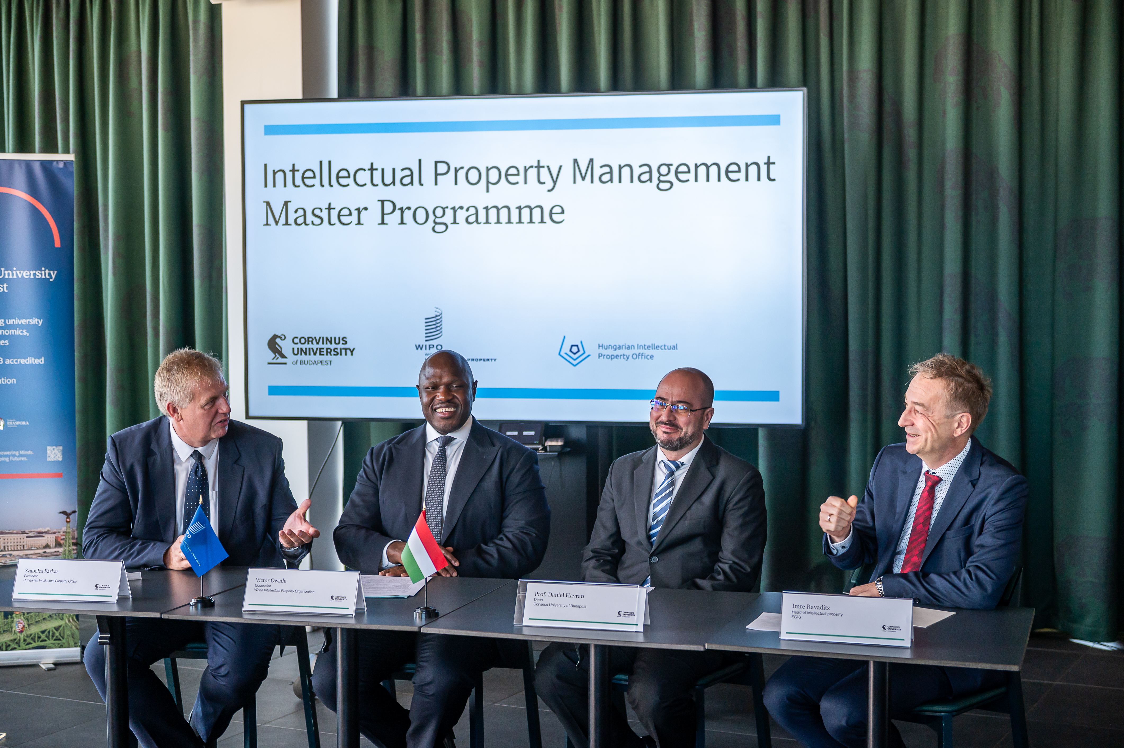 A nemzeti szakpolitikai dimenziót képviselve Farkas Szabolcs, a Szellemi Tulajdon Nemzeti Hivatalának elnöke így fogalmazott: „Büszkék vagyunk arra, hogy az SZTNH része lehet ennek a háromoldalú együttműködésnek a Corvinus Egyetemmel és a WIPO-val. Az oktatás, a tudás terjesztése és a szellemi tulajdon fontosságának tudatosítása stratégiai céljaink közé tartozik. Meggyőződésem, hogy a közös Szellemi tulajdon menedzsment mesterszak létrehozása nemcsak Magyarországon és a régióban, hanem nemzetközi szinten is hozzájárul majd a szellemi tulajdon és az innovációs ökoszisztéma megerősítéséhez. Az új szakemberek képzése mindazoknak előnyt jelent, akik a jövőben részt vesznek a szellemi tulajdon létrehozásában, védelmében és hasznosításában.”