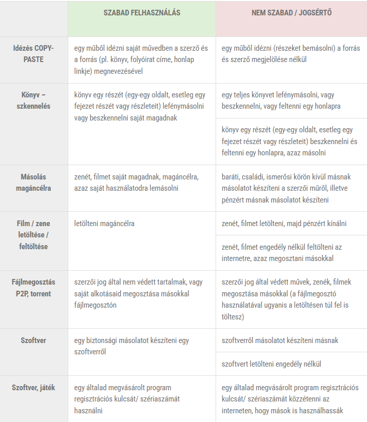 Vannak azonban olyan esetek, amikor a szerzői művek szabadon felhasználhatóak, anélkül, hogy ahhoz a szerző engedélye, illetve díj fizetése kötelező lenne.